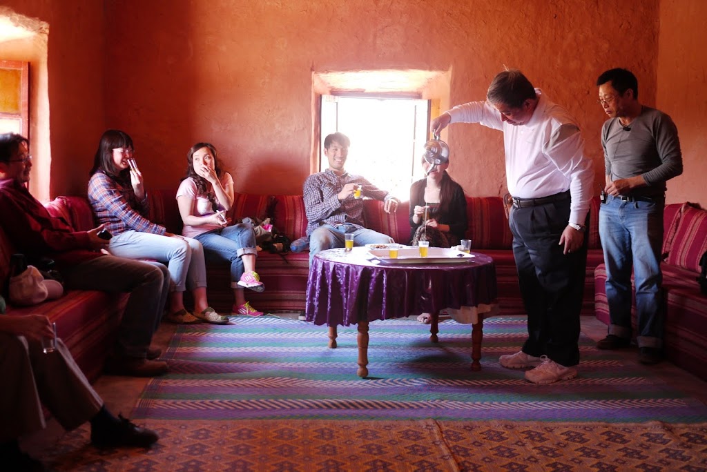 途中向一間旅館借了洗手間,全團人都下去洗手,在中庭處發現了這張漂亮的手繪地圖,陳老師於是再介紹了一下這幾天經過的地區及特色,大家印象最深的還是撒哈拉沙漠啦!